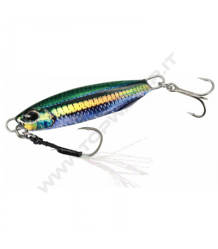 Metal jig da shore jigging con velocità di affondamento media e corpo compatto che oltre ad avere un ottima lanciabilità permette di ottenere un movimento efficacie sia in discesa che in fase di risalita.