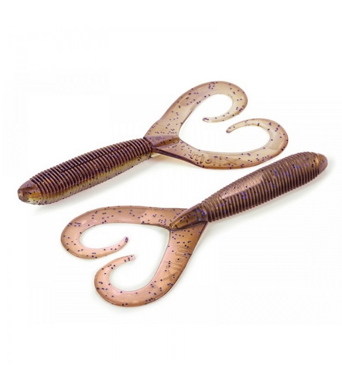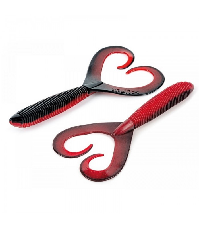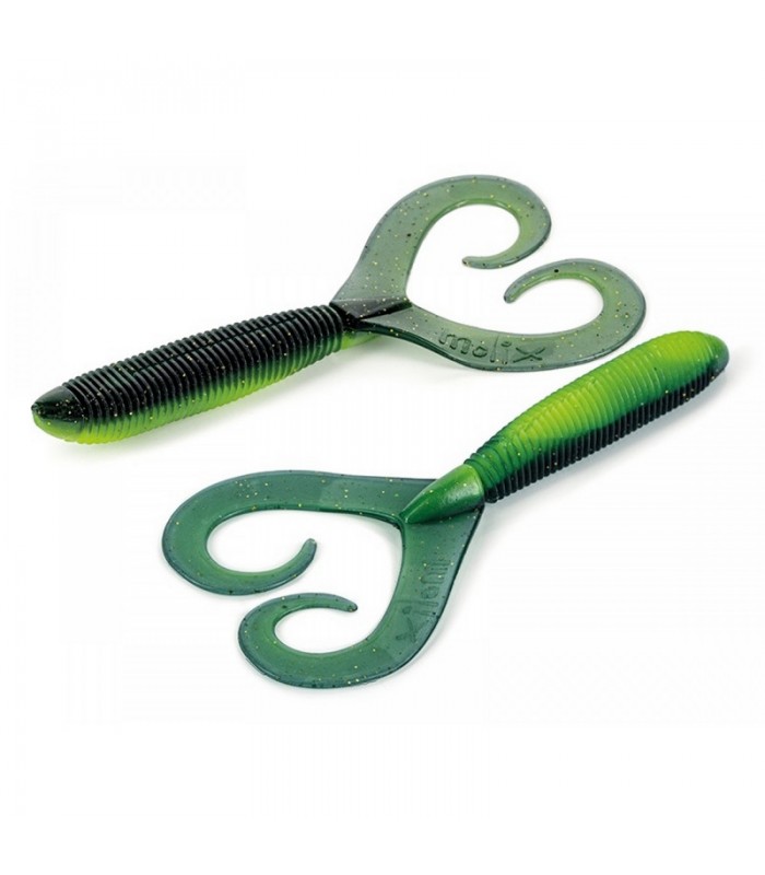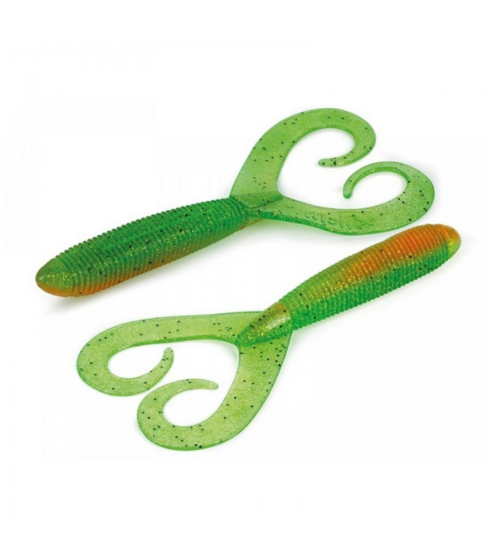 Si tratta di una twintail softbait destinata ad una grande varietà di predatori come bass, lucci, siluri, sandre, aspi, perfetta anche per lo spinning in mare su spigole, dentici, cernie, e molti altri. Può essere innescata in mille modi diversi, anche con inneschi anti-incaglio grazie alla sua mescola morbida ma resistente. La doppia coda a falcetto provvede alla produzione di una notevolissima quantità di vibrazioni ad alta frequenza che induce il predatore ad attaccare anche in acque torbide o scure.