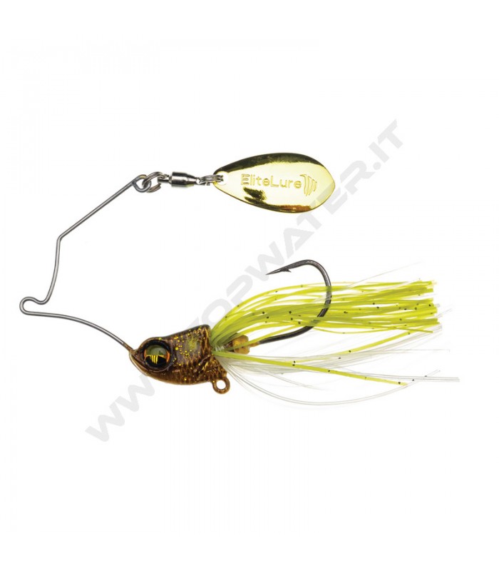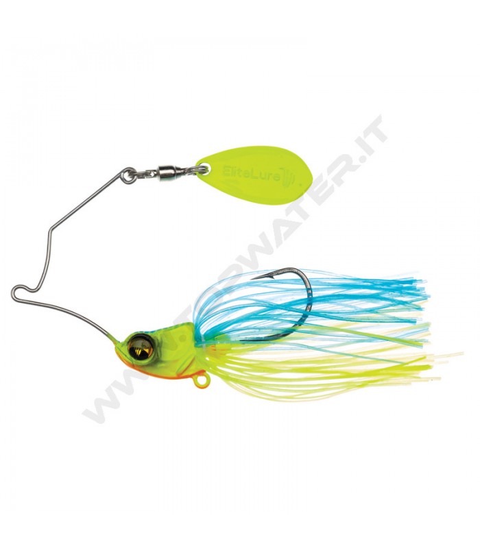 Elitelure Wildkkat Spinnerbait è uno spinnerbait molto compatto con singola paletta del tipo "Indiana" di piccole dimensioni per un effetto poco invasivo e per ridurre al massimo l'attrito generato durante il recupero.