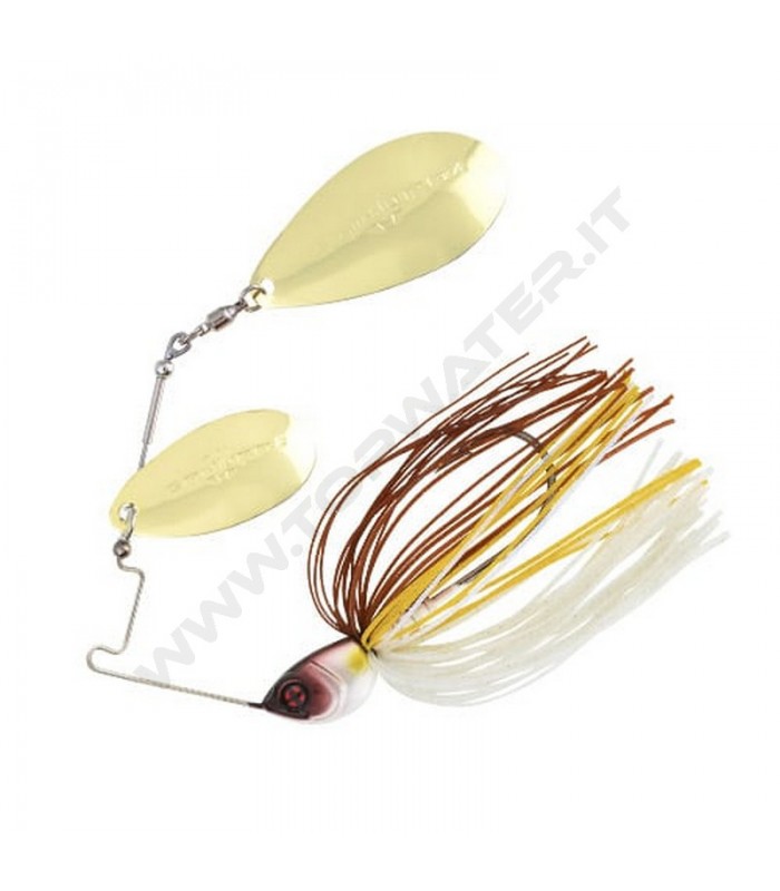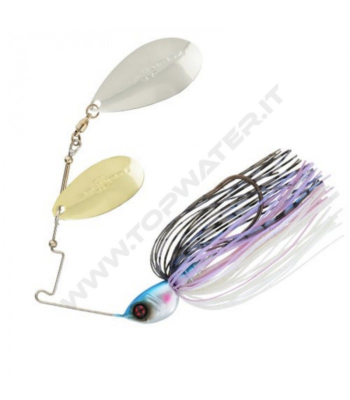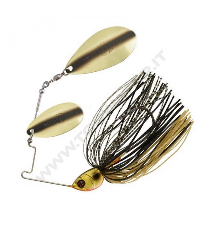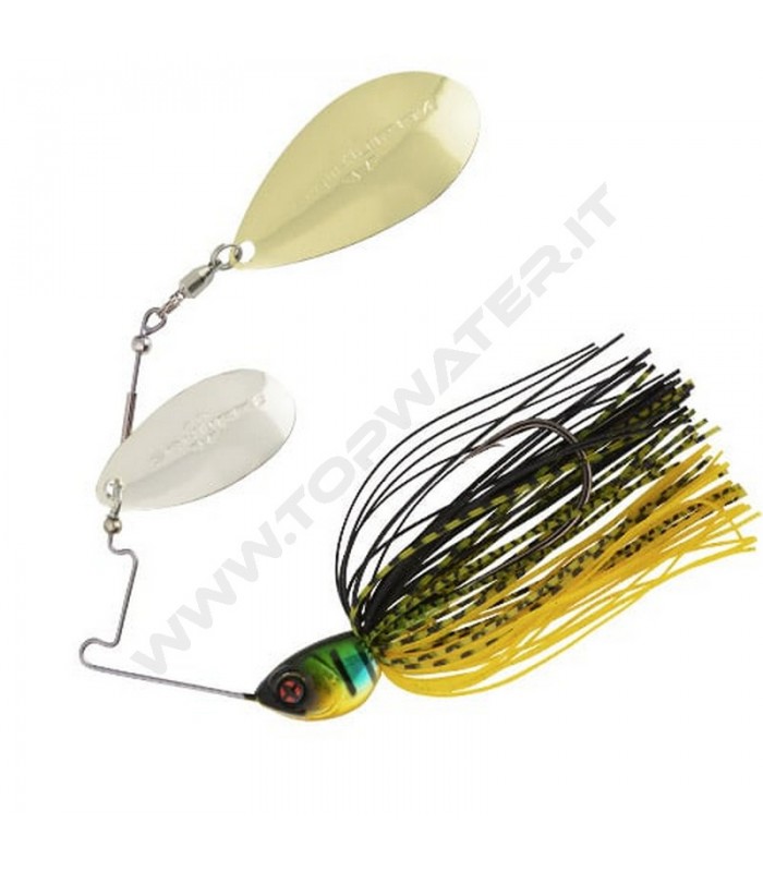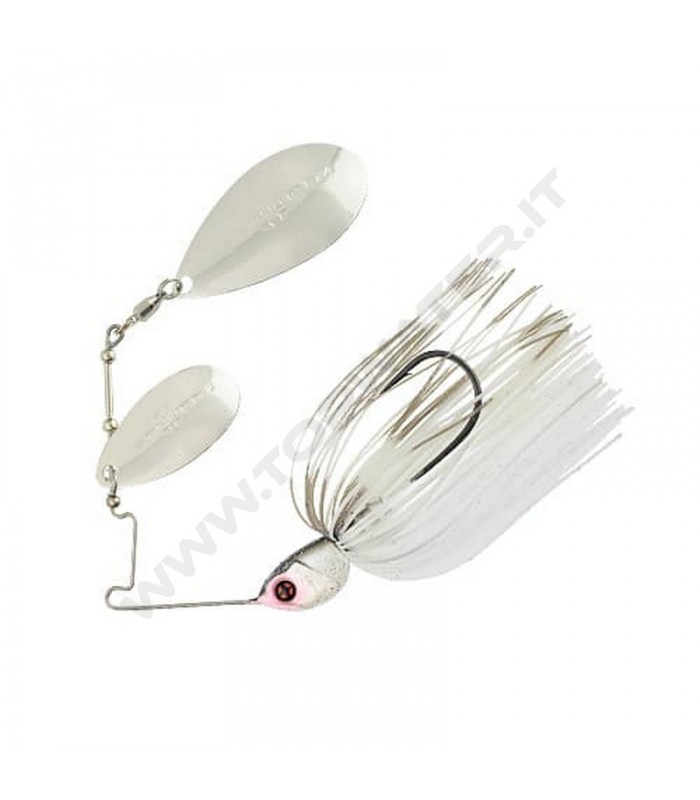 Spinnerbait con doppia paletta de tipo Indiana high rotation, produce una elevatissima velocità di rotazione per vibrazioni e flash ad alta frequenza.