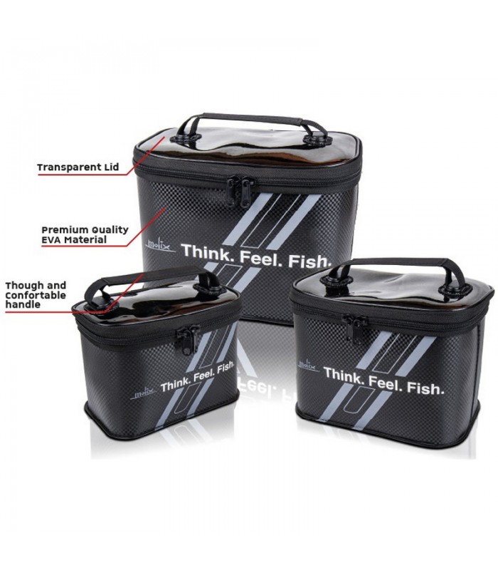 EVA Tackle Bag è un borsa in EVA con maniglia, ideale per riporre e trasportare esche ed accessori per la pesca di qualsiasi tipo. La parte superiore è trasparente per facilitare l’identificazione del contenuto senza doverla aprire. Sono realizzate in EVA di altissima qualità.
