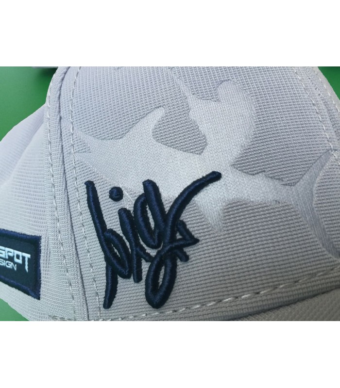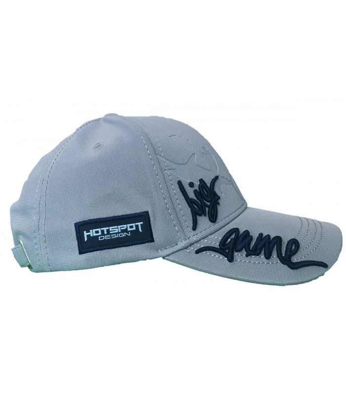 Sempre sulla visiera c'è la scritta “big game” in ricamo 3d, il pescatore col pesce in bassorilievo ed il logo HS realizzato da stampo a caldo per un piacevole effetto tono su tono.