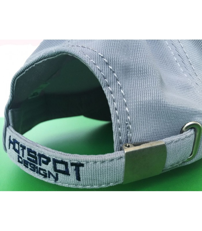 Nella parte posteriore abbiamo la cinta in tessuto con logo ricamato e con fibbia in metallo con logo Hotspot Design, per regolare la circonferenza del cappello.