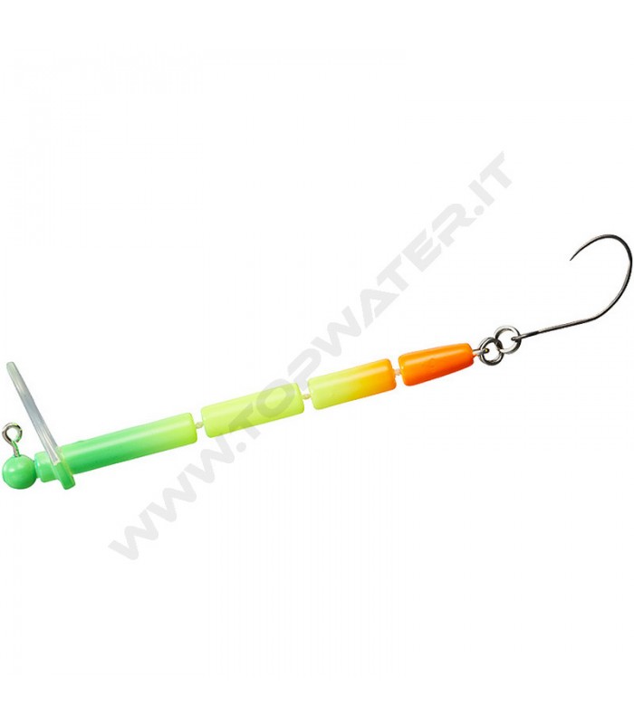 Si tratta di un reverse crank snodato in quattro segmenti con la paletta che lavora verso l'alto anziché verso il basso come le normali esche, in questo modo si ottiene un movimento insolito che stimola la curiosità della trota.
