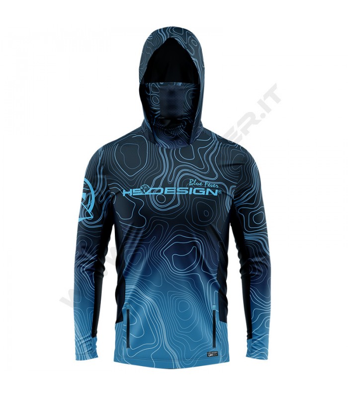 HotSpot Design T-shirt Ocean Performance Bathymetry è una T-shirt dalle prestazioni estremamente avanzate che ha diverse caratteristiche aggiuntive come la maschera facciale integrata con tessuto a rete di ventilazione per proteggere naso, bocca, collo inoltre presenta doppie tasche frontali con zip e tasca portaoggetti in velcro sul lato sinistro, pannelli laterali ventilati in rete che consentono flusso d'aria ottimale. Il cappuccio a tre pannelli offre la massima protezione solare per la testa e il collo. Costruito per le condizioni più difficili e per combattere il caldo e l'umidità.