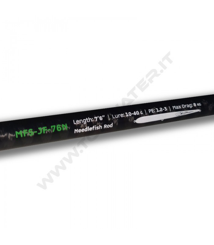 Molix Fioretto Speciale MFS-JF-76N Jack Fin Needlefish è una canna realizzata in collaborazione tra le due famosissime aziende italiane Molix e Jack Fin ed è destinata principalmente per la pesca dei pesci serra con needlefish ed esche di superficie in generale.