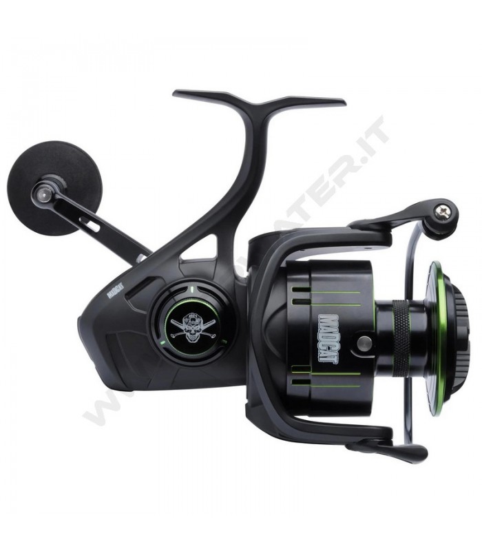 Madcat Dominion Spinning Reel è un mulinello concepito espressamente per la pesca a spinning del siluro dalla struttura robustissima con corpo in metallo, ingranaggi e albero del rotore di dimensioni maggiorate per resistere alle trazioni più elevate.