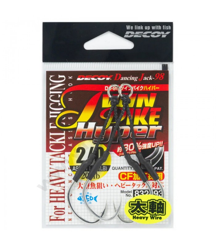 Decoy Twin Pike Hyper DJ-98 è una serie di robustissimi assist hook doppi, realizzati per resistere a trazioni elevatissime. Ideali per il montaggio su metal jig.