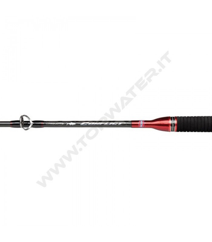 La PENN Conflict Trolling è una serie di potenti canne progettate specificamente per le tecniche di traina e drifting nel Mediterraneo dotate di tecnologia di rinforzo del blank X-Wrap e guide Fuji Alconite Acid.